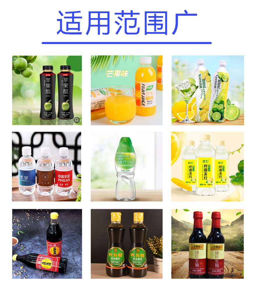 此生產線主要應用于飲料酒類行業(yè)例如:各種飲料,白酒,黃酒,葡萄酒,果酒等水劑類產品,設備采用先進的光、電、氣一體化自動控制系統(tǒng),實現(xiàn)進瓶,定位,灌裝,出瓶自動化生產。